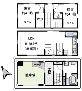 | 設備・条件 | 楽器相談可 2人入居可 ペット対応 IHコンロ 三口以上コンロ システムキッチン 給湯 追い焚き 洗髪洗面化粧台 独立洗面台 シャワー 浴室乾燥機 バス・トイレ別 温水洗浄便座 エアコン 床暖房 W.INクローゼット ロフト付き 室内洗濯機置き場 洗濯機置き場有 TVドアホン 都市ガス 公営水道 駐車場有 フローリング | ||